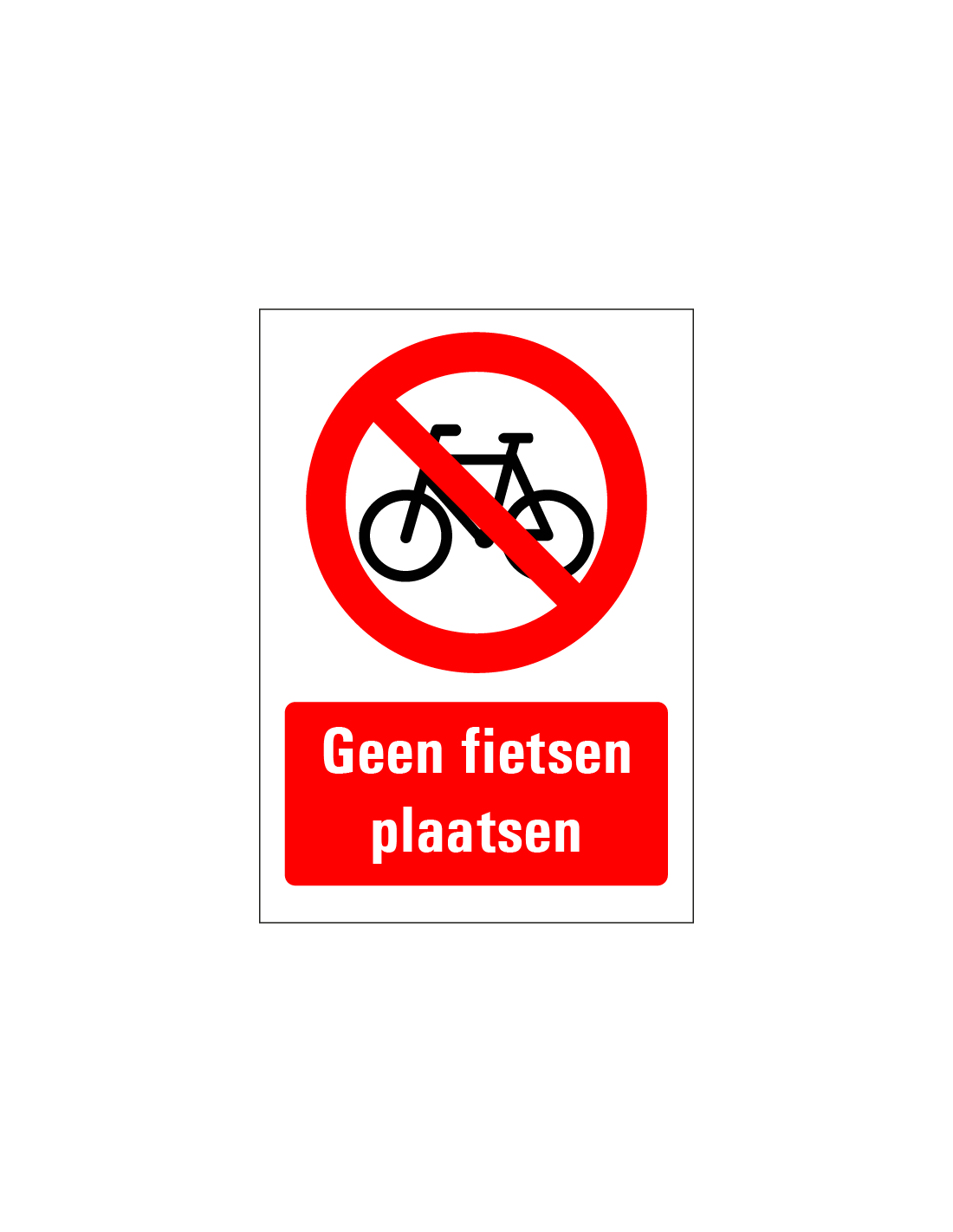 Het tekst bord geen fietsen plaatsen geeft aan dat het niet wordt gewaardeerd dat fietsen op een bepaalde plek worden neergezet. De Nederlandse tekst maakt nog duidelijker wat het pictogram inhoudt. Dit voorkomt tevens misverstanden. Het bord is verkrijgbaar in meerdere A-formaten en is gemaakt van polystyreen.