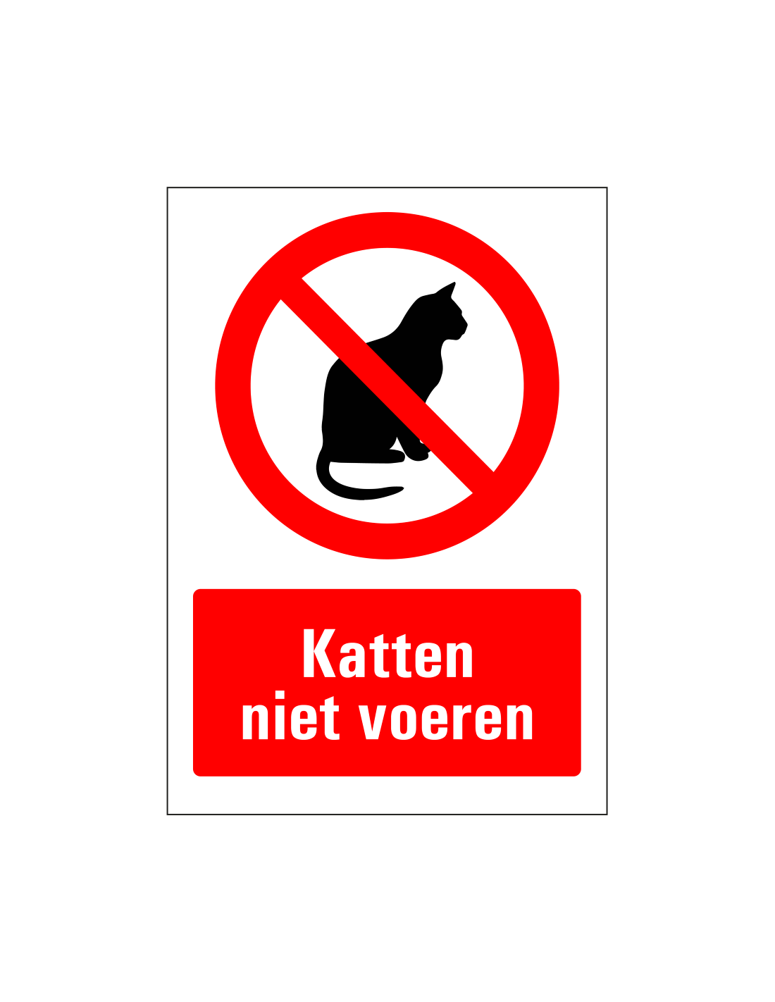 Het Katten niet voeren bord is een rechthoekig bord met een verbodssymbool van een kat om aan te geven dat je katten hier niet mag voeren. Het bord is voorzien van de Nederlandse tekst "Katten niet voeren" in witte letters op een rode achtergrond. Het bord is verkrijgbaar in verschillende afmetingen en is geschikt voor binnen- en buitengebruik.