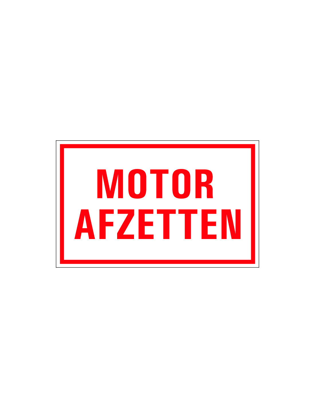 Het bord met tekst motor afzetten geeft aan dat het aangeraden wordt om de motor van een machine af te zetten in een bepaald gebied.