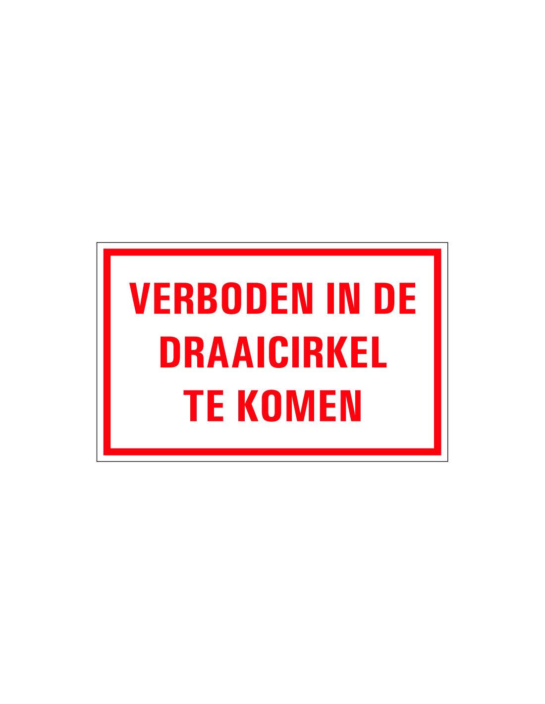 Het bord met tekst verboden in de draaicirkel te komen geeft aan dat het verboden is om in de draaicirkel te komen van een bepaalde machine. Dit kan namelijk levensgevaarlijk zijn.