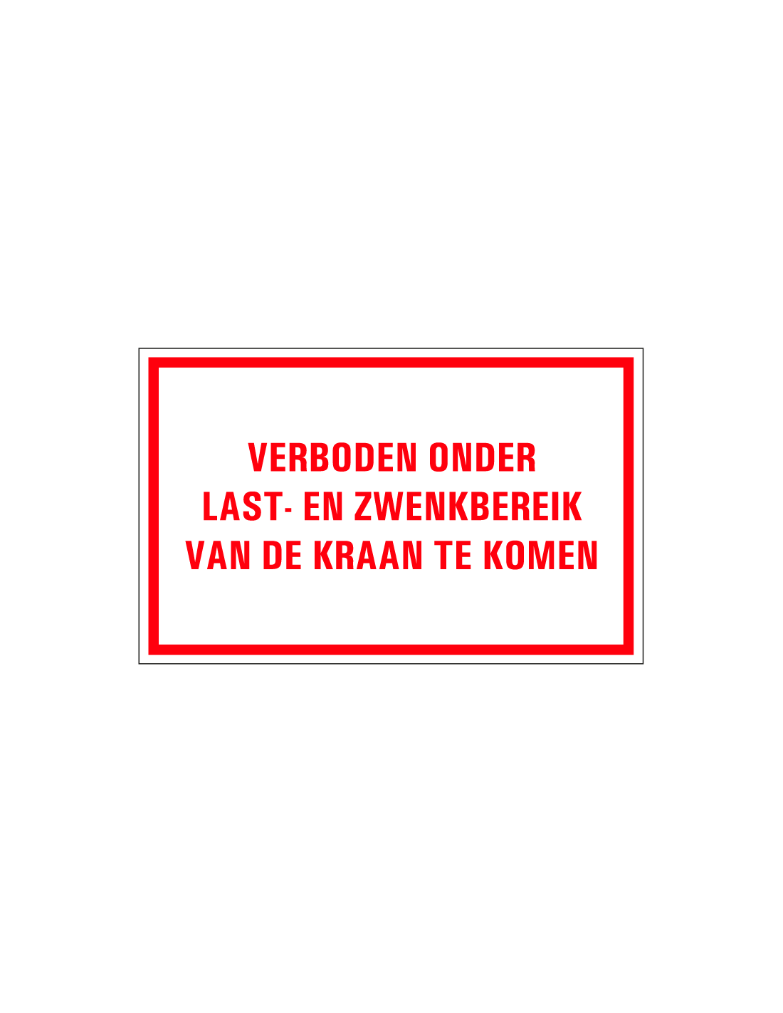 - Met Nederlandse tekst: verboden onder last en zwenkbereik van de kraan te komen