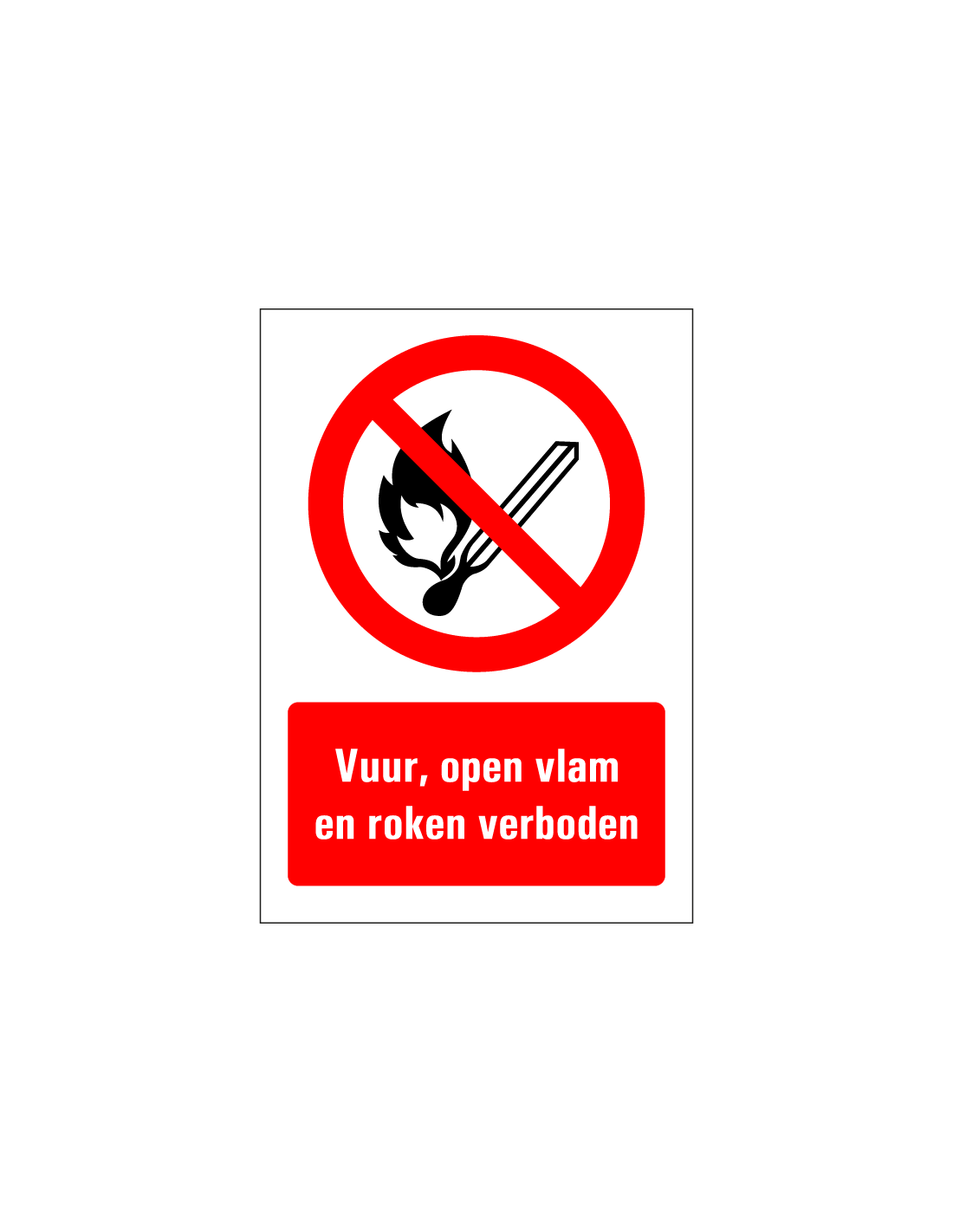 - Met afbeelding en Nederlandse tekst: vuur, open vlam en roken verboden