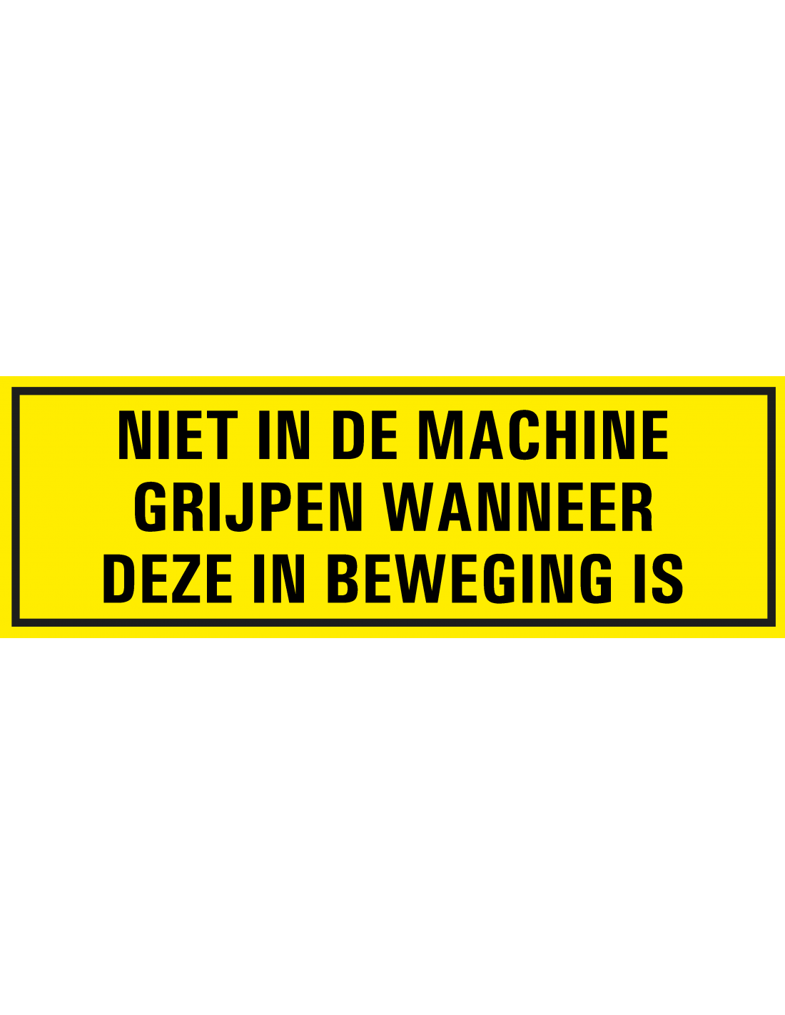 Het niet in de machine grijpen bord met tekst is gemaakt van kunststof. Kunststof is makkelijk te gebruiken en makkelijk te bevestigen. Het bord geeft duidelijk aan het er gevaar dreigt. Door de gele kleur met zwarte tekst valt dit bord vrijwel meteen op. Door dit bord te gebruiken, worden ongelukken en misverstanden voorkomen.