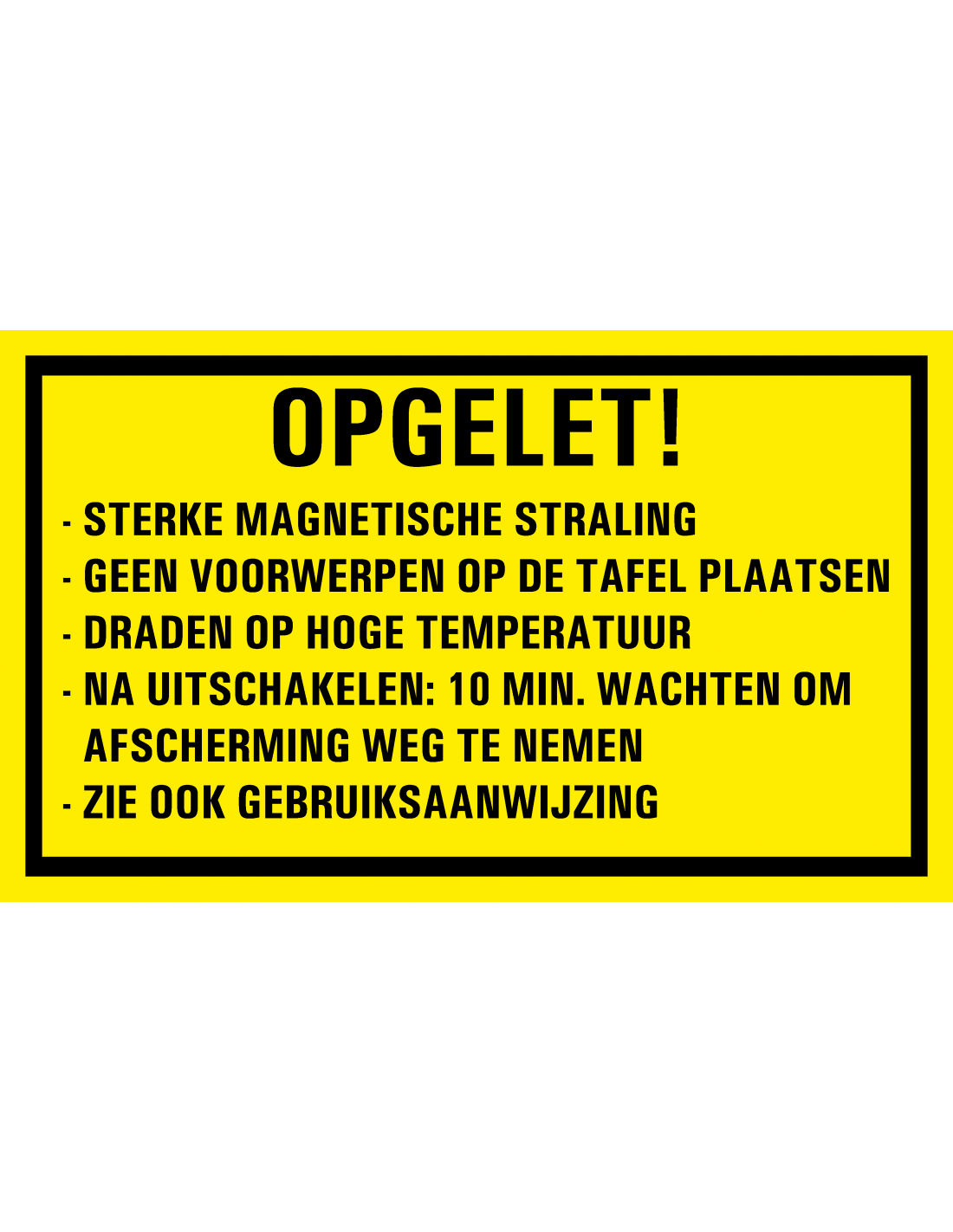 - Bord met tekst opgelet!