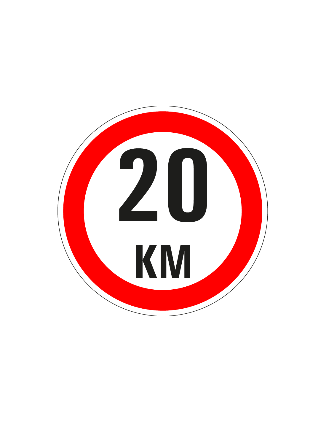 - Rond bord met tekst 20 km