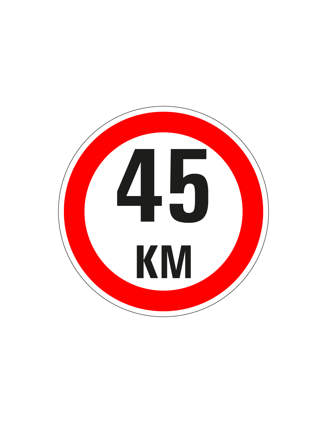 - Rond bord met tekst 45 km