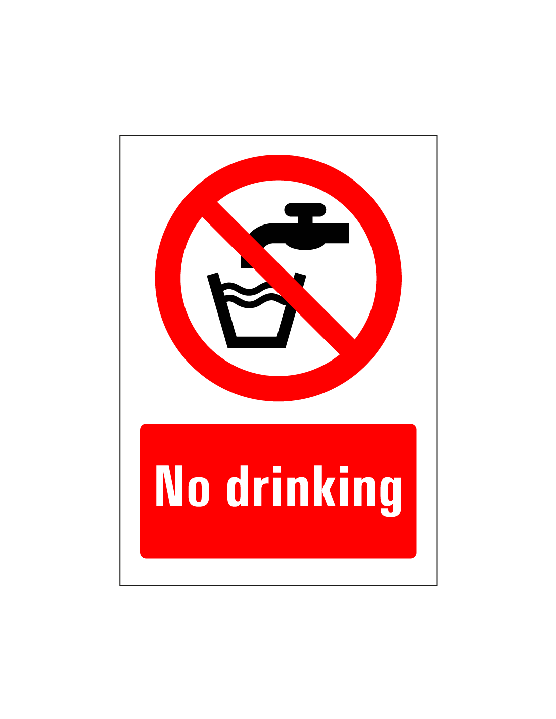 Het no drinking bord is een rechthoekig bord met een verbodssymbool om aan te geven dat dit water geen drinkwater is. Het bord is voorzien van de Engelse tekst "No drinking" in witte letters op een rode achtergrond. Het bord is verkrijgbaar in verschillende afmetingen en is geschikt voor binnen- en buitengebruik.