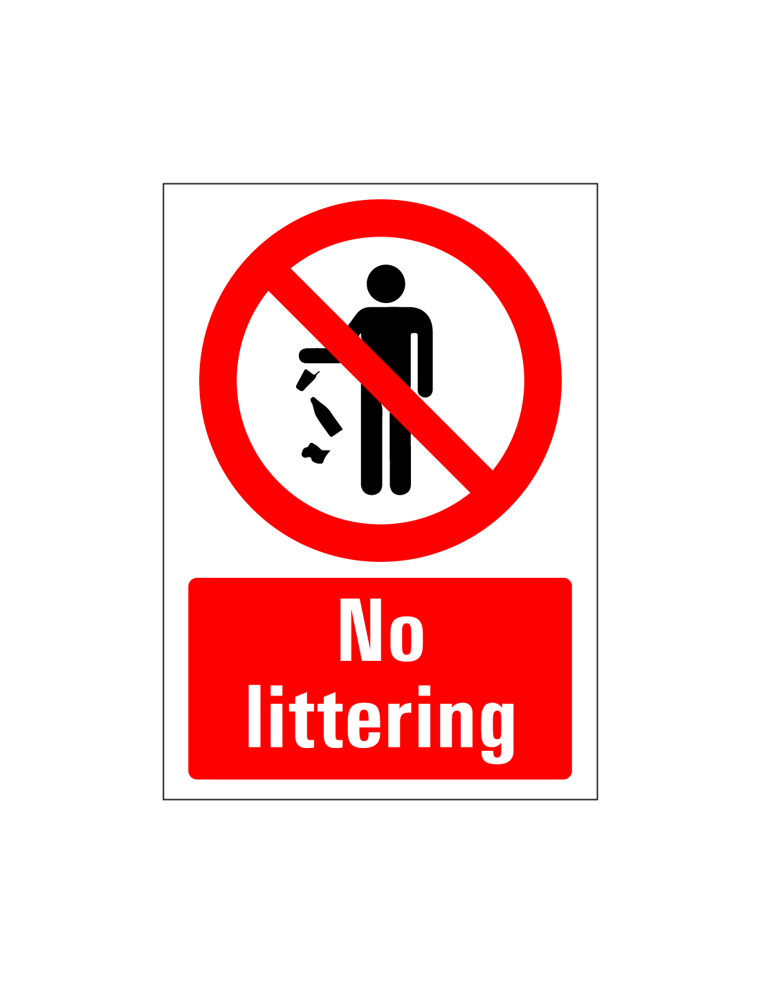 - Rechthoekig bord met symbool persoon die zwerfafval gooit en tekst no littering