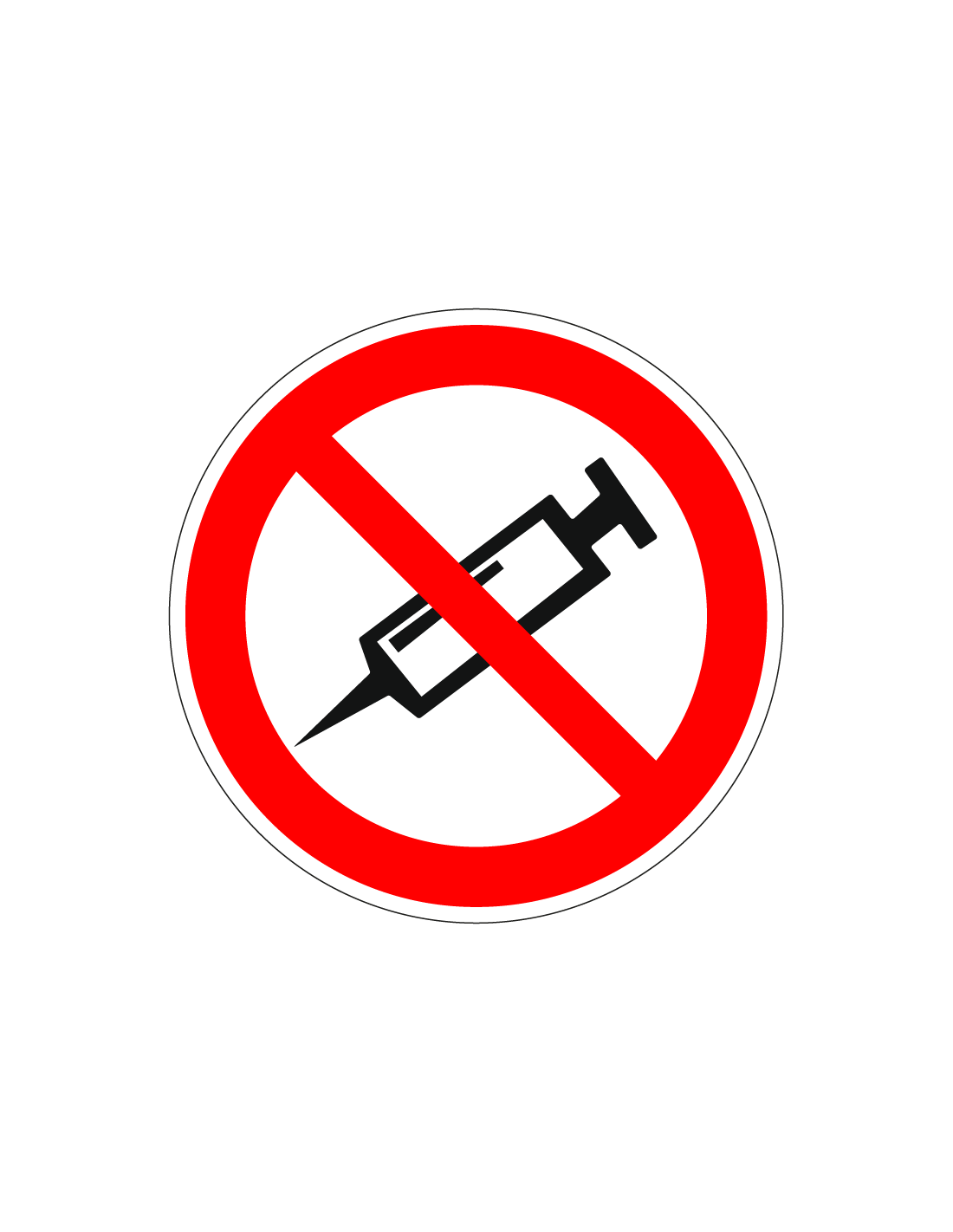 Dit verboden om injecties te plaatsen bord geeft aan dat het verboden is om op deze plek of in dit gebied injecties te geven. Dit is bijvoorbeeld handig wanneer u niet wilt dat mensen met een drugsverslaving zichzelf injecteren of wanneer het onsteriel gebied/ruimte is.