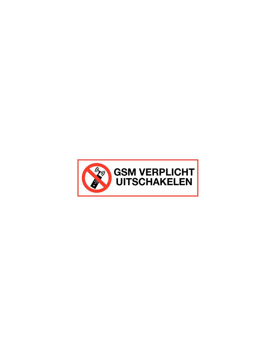 Het Gsm verplicht uitschakelen bord is gemaakt van kunststof. Dit is een synthetisch geproduceerd materiaal. Het bord is bestand tegen water, olie, logen en lichte zuren. Verder is het bord temperatuurbestendig van -30 tot +50 °C. Dit bord laat zien dat alle Gsm's uitgeschakeld moeten worden bij betreding van een ruimte of lokaal. Hiermee wordt voorkomen dat mensen worden afgeleid door een Gsm. Door het gebruik van dit bord kunnen misverstanden worden voorkomen.