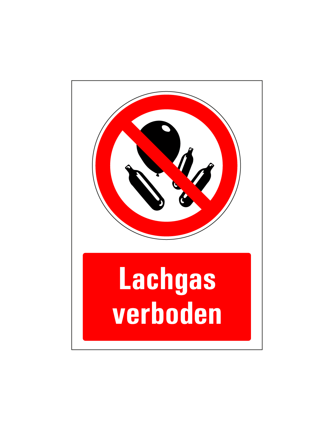 Het lachgas verboden bord met tekst kun je gebruiken om aan te geven dat je op deze plaats geen lachgas mag gebruiken. Op die manier maak je duidelijk dat je niet op overlast vanwege lachgas zit te wachten.