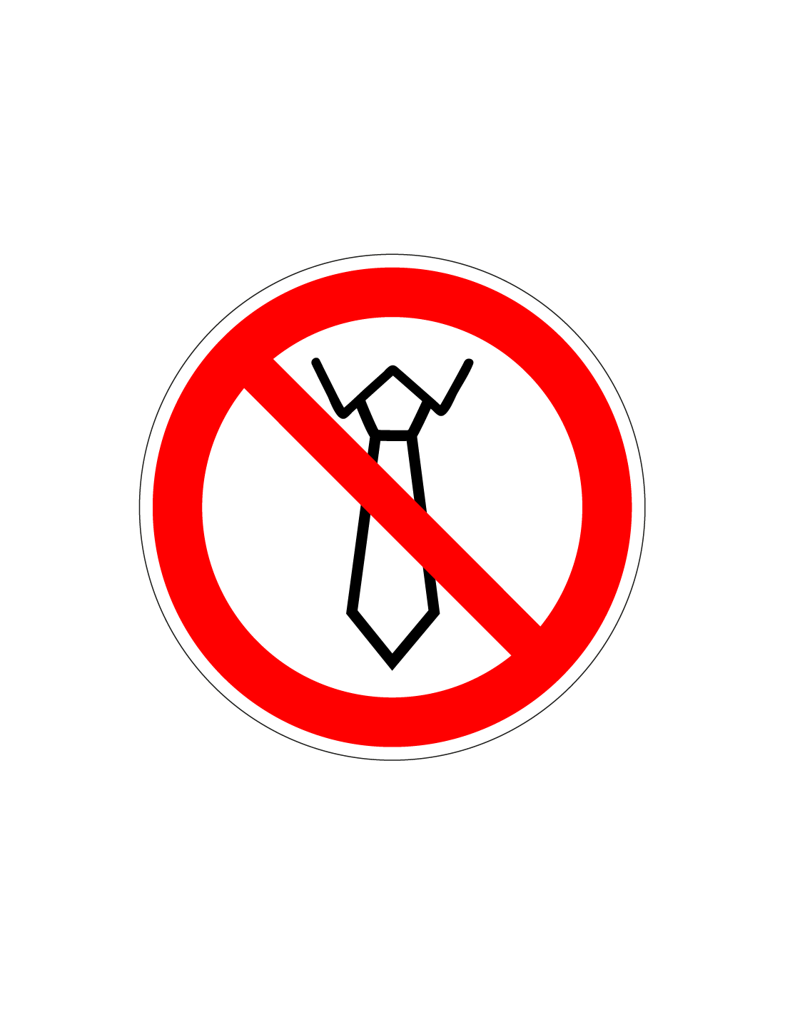 Verder is het stropdas verboden symbool gekeurd volgens de laatste veiligheidsnormen. Het bord is gemaakt van kunststof, wat hem geschikt maakt voor binnen- en buitengebruik. Bovendien is het bord temperatuurbestendig van -40 tot +60 °C en resistent tegen oplosmiddel en lichte chemicaliën. Het bord is licht, stabiel en niet makkelijk ontvlambaar.