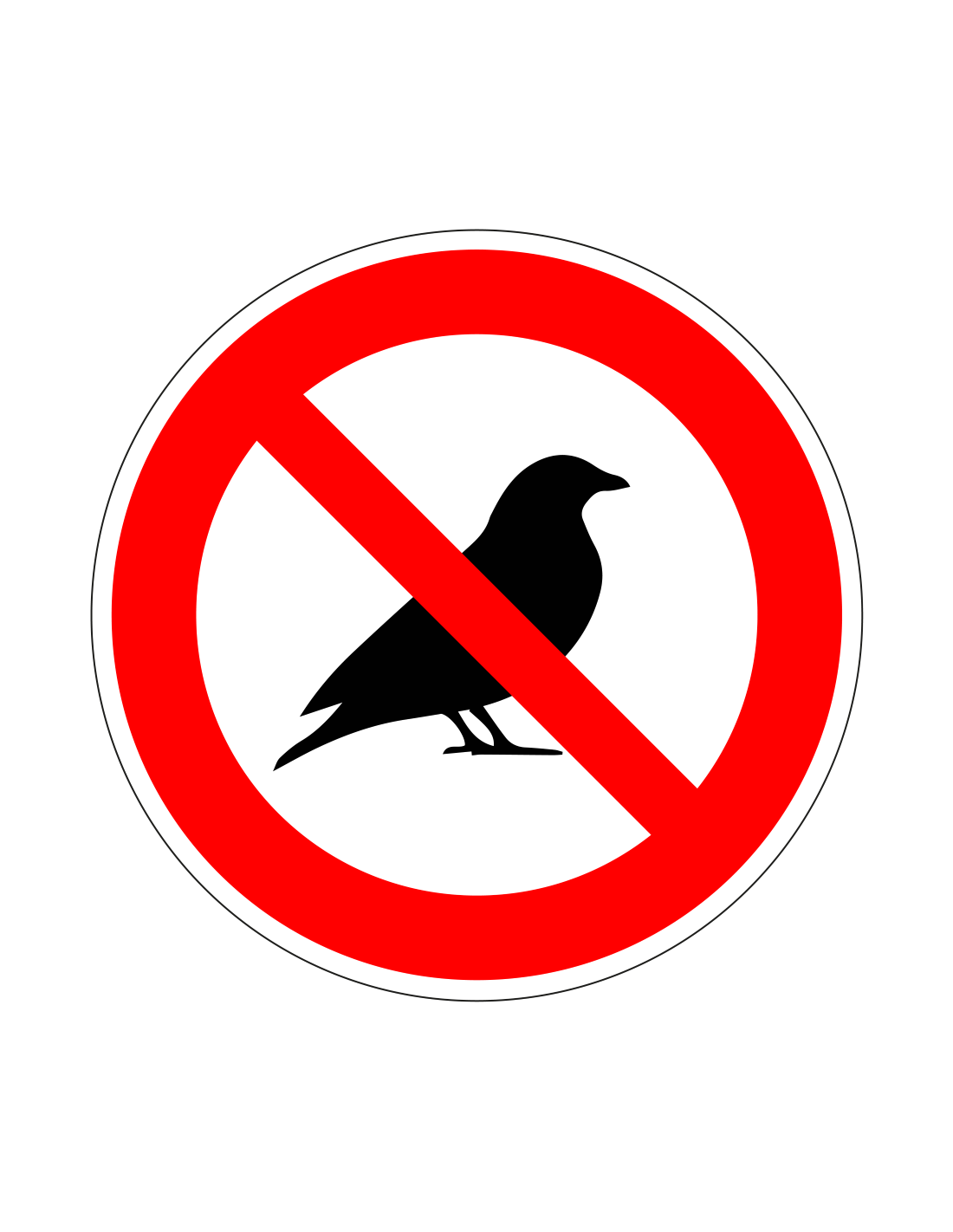 Het Verboden voor vogels bord is een rond bord met een symbool om aan te geven dat er hier sprake is van een verbod voor vogels. Het bord is voorzien van het vogel symbool in zwart op een witte achtergrond. Het bord is verkrijgbaar in verschillende afmetingen en is geschikt voor binnen- en buitengebruik.