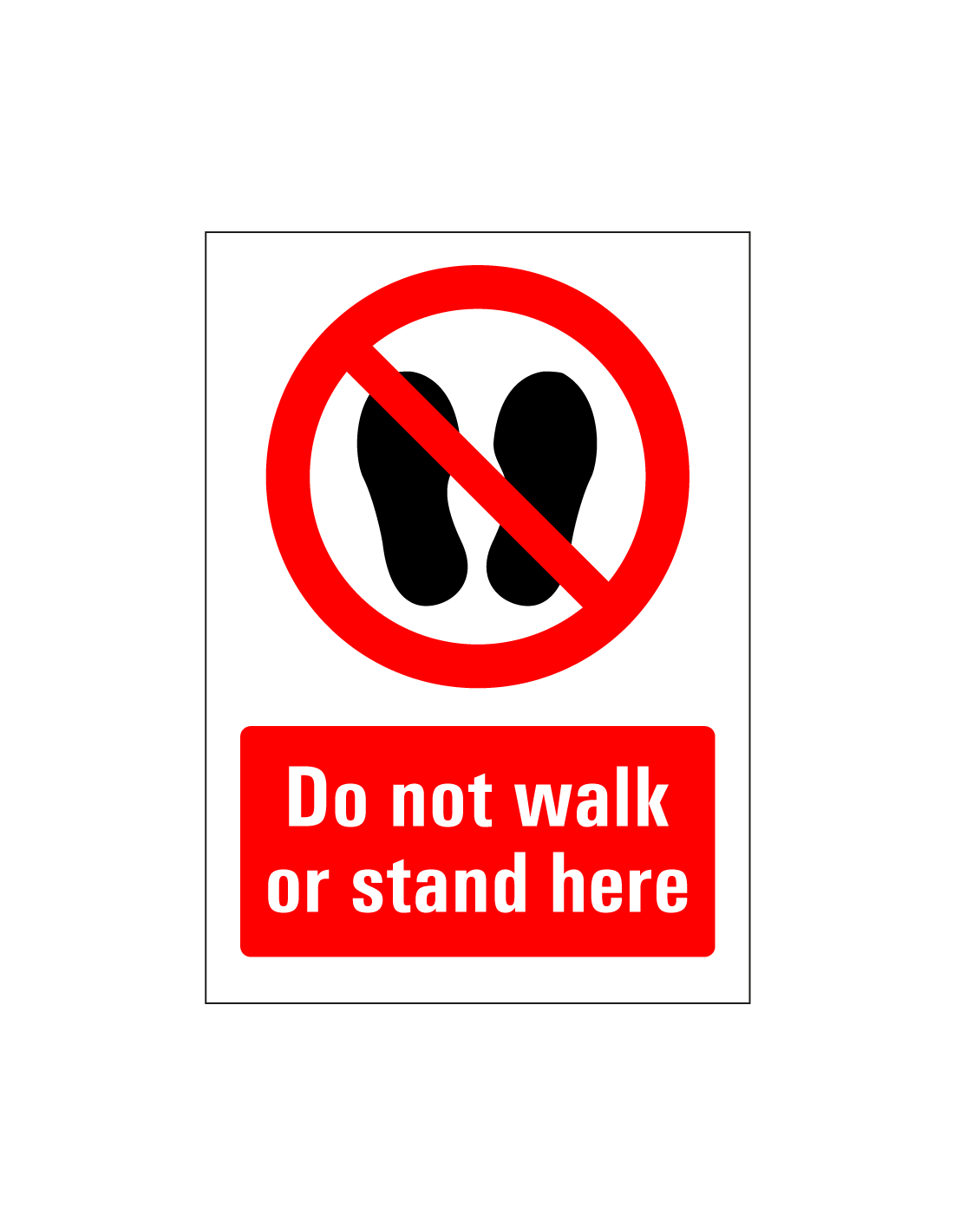 Het do not walk or stand here bord is een rechthoekig bord met een verbodssymbool om aan te geven dat je op deze plek niet mag gaan staan of lopen. Het bord is voorzien van de Engelse tekst "Do not walk or stand here" in witte letters op een rode achtergrond. Het bord is verkrijgbaar in verschillende afmetingen en is geschikt voor binnen- en buitengebruik.