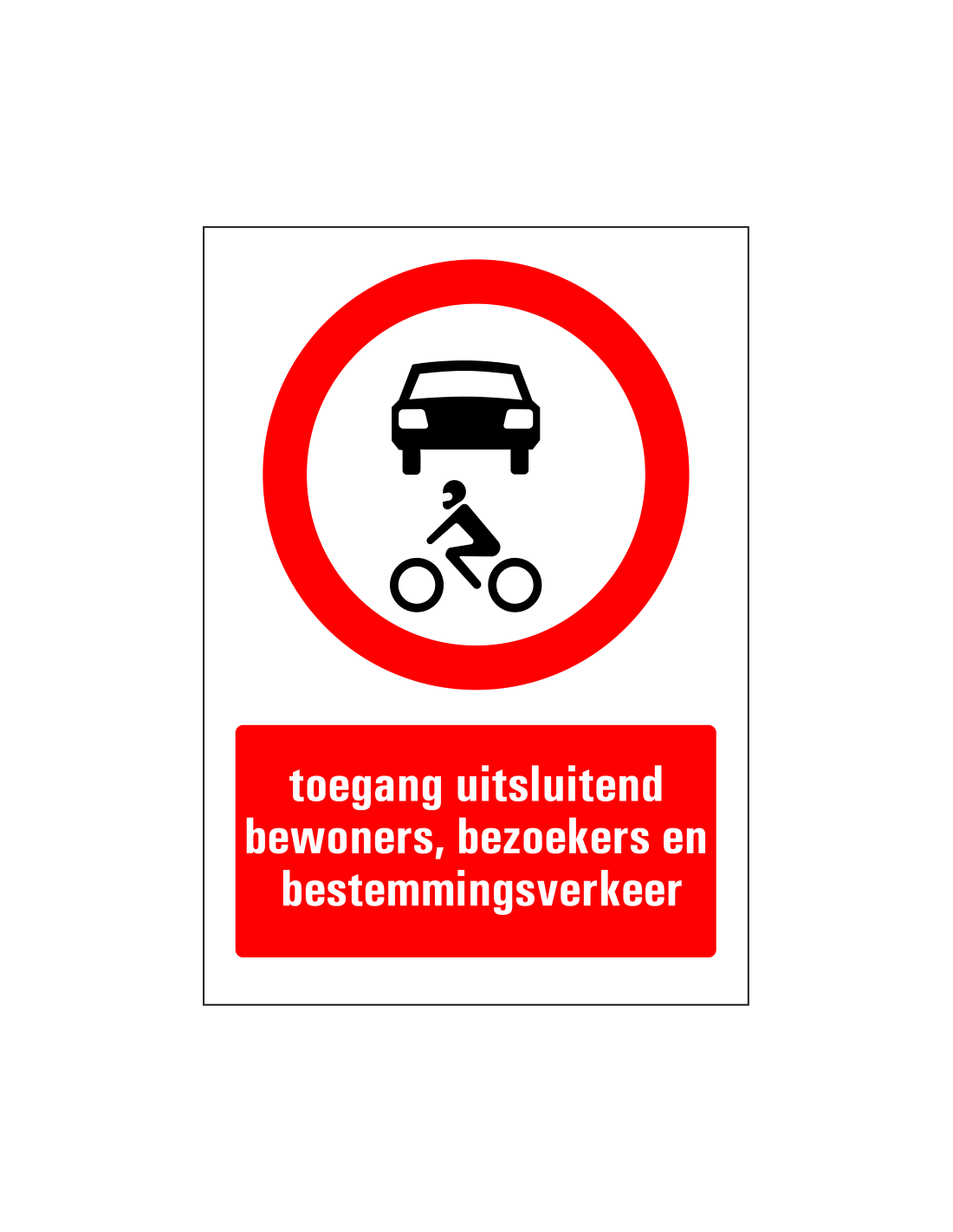 - Met tekst: toegang uitsluitend bewoners, bezoekers en bestemmingsverkeer