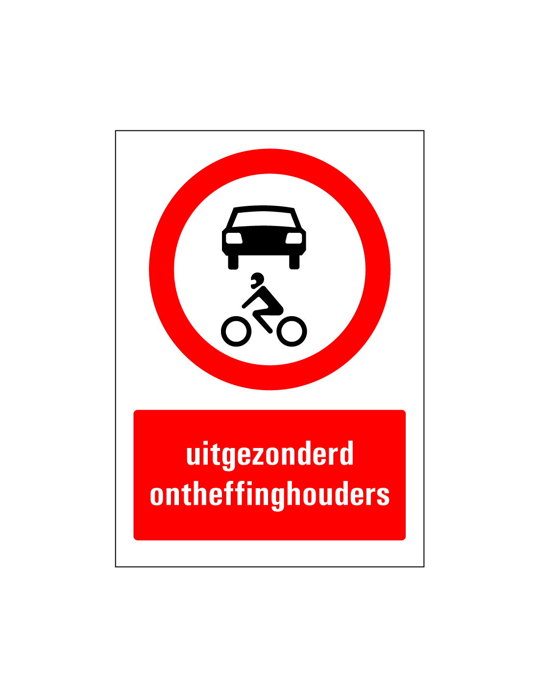 Belangrijkste kenmerken uitgezonderd ontheffinghouders bord