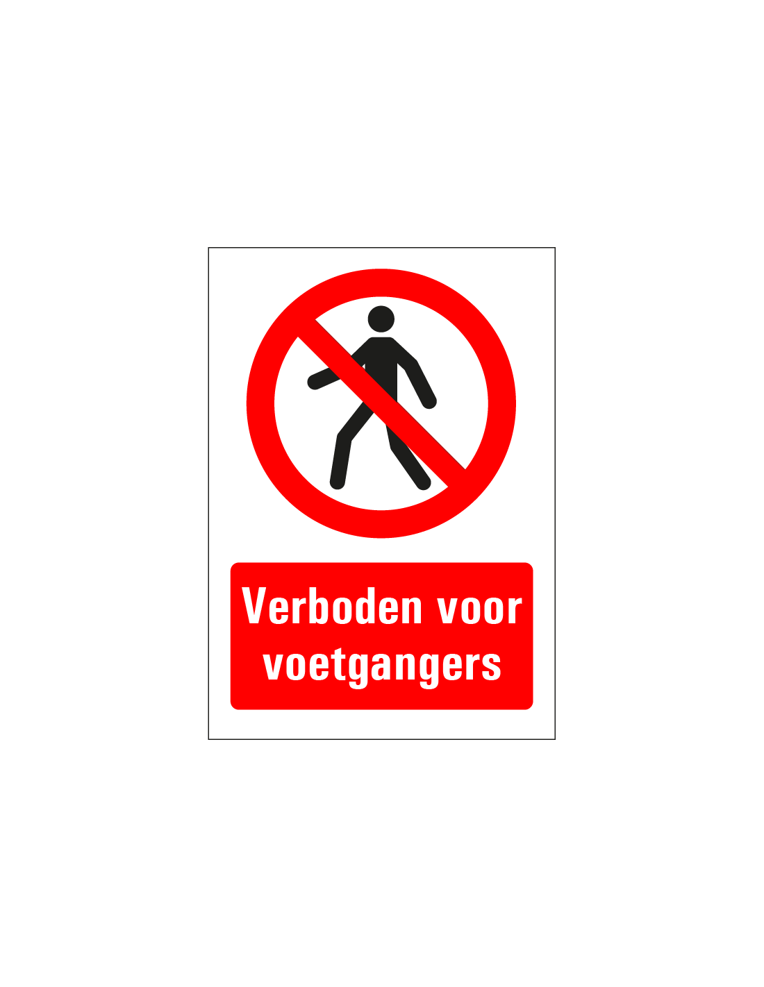De sticker met tekst voetgangers verboden geeft aan dat het niet wordt gewaardeerd om als voetganger een bepaalde weg te betreden. De Nederlandse tekst maakt nog duidelijker wat het pictogram inhoudt. Dit voorkomt tevens misverstanden. De sticker is verkrijgbaar in meerdere A-formaten en is gemaakt van polystyreen.
