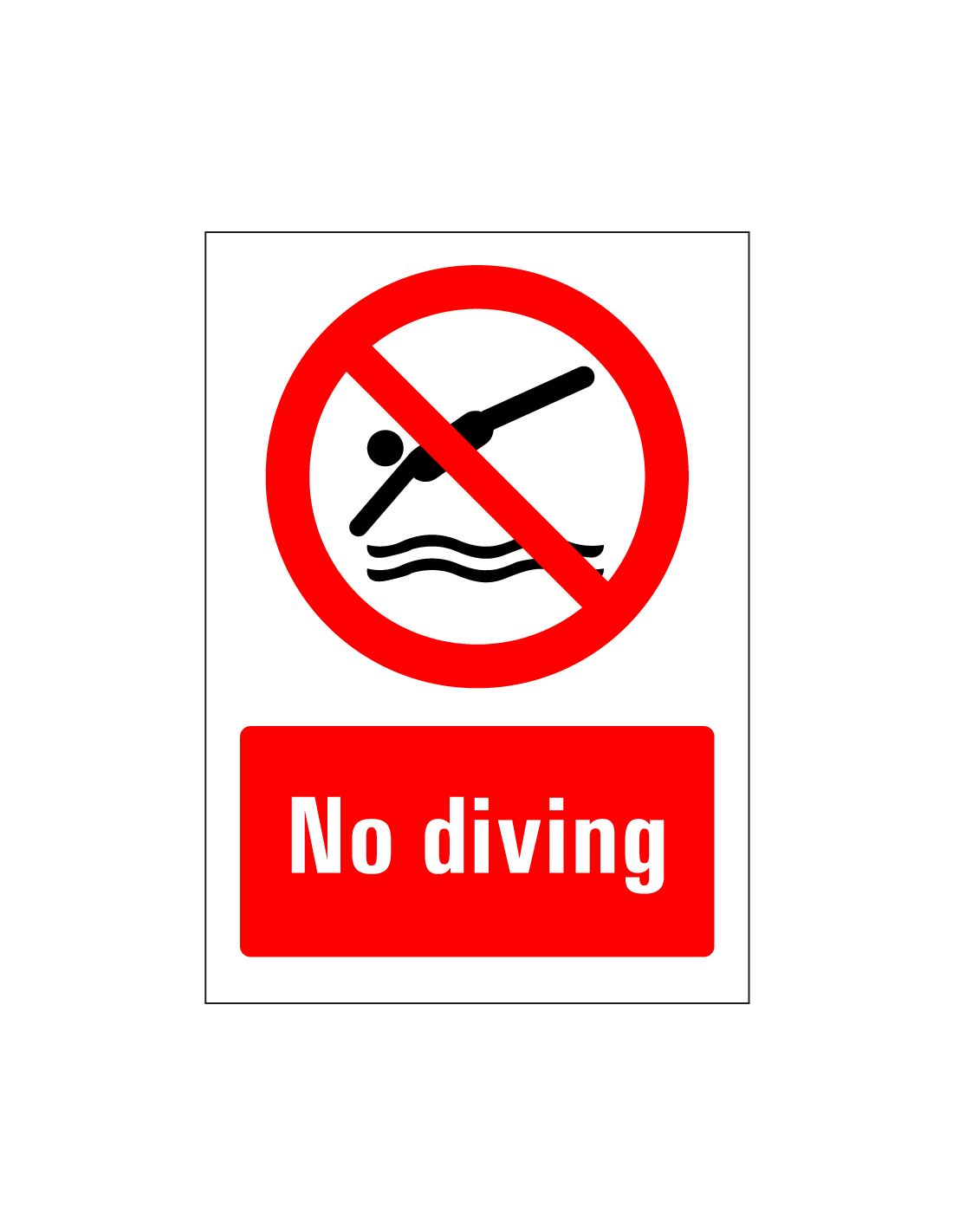 Het No diving bord is een ideaal product om aan te geven dat duiken in het water hier verboden is. Het bord is verkrijgbaar in verschillende afmetingen en is geschikt voor zowel binnen- als buitengebruik.