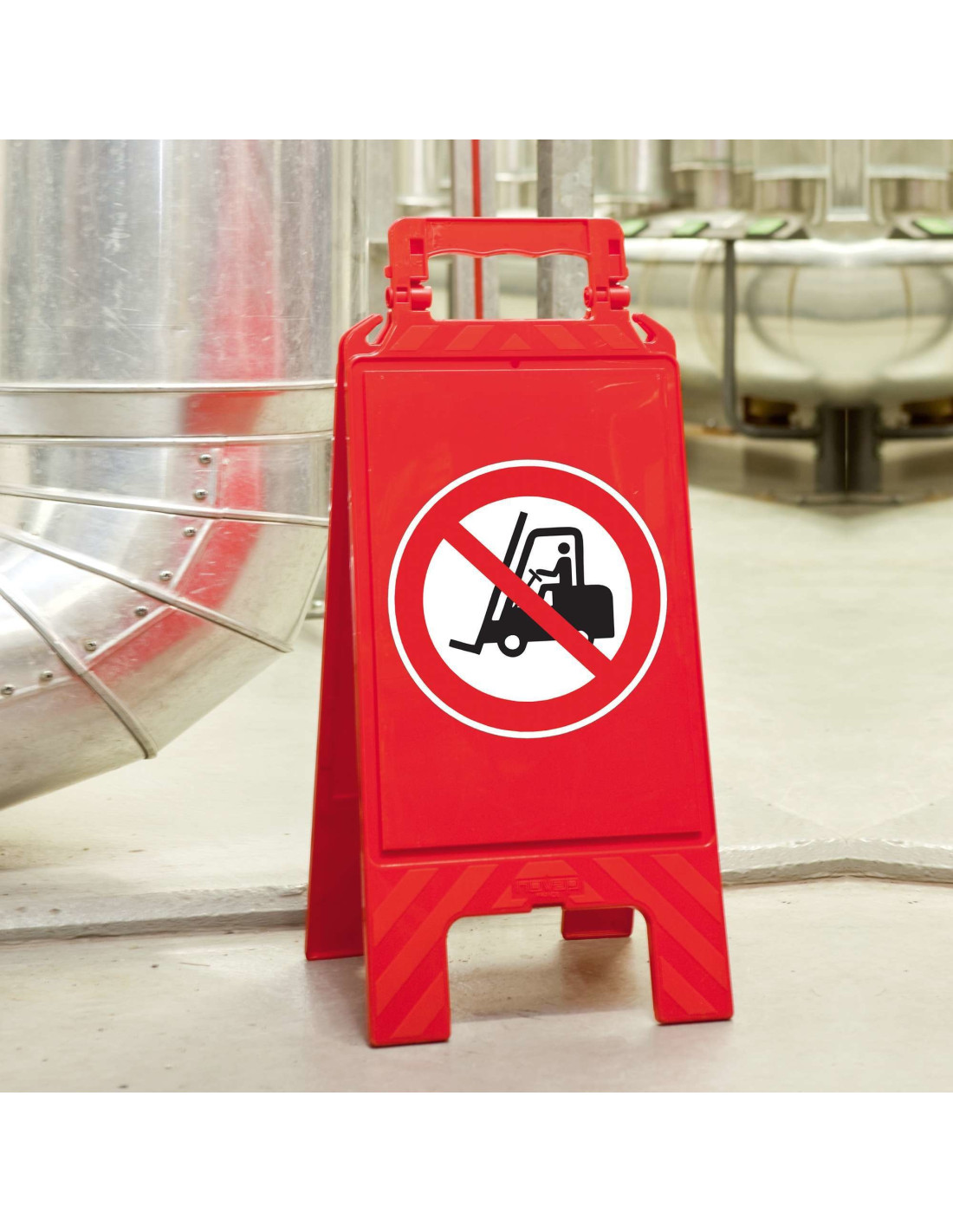 Deze inklapbare signalering met verboden voor heftrucks verbodspictogram is bijzonder breed wanneer uitgeklapt. Hierdoor staat het bord bijzonder stevig en waait het niet makkelijk om. De ISO 7010 symbolen zijn in het midden geplaatst en zijn ook groter dan op normale verbodsborden. Ze zijn visueel en snel waarneembaar, zo is het voor iedereen duidelijk wat met het bord bedoeld wordt.