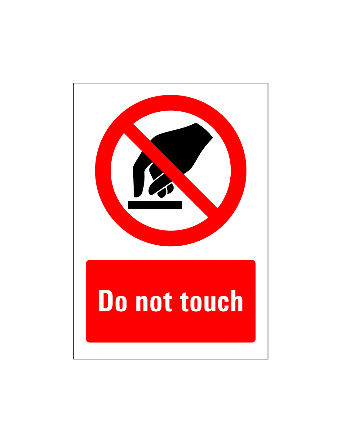 Het do not touch bord is een rechthoekig bord met een verbodssymbool om aan te geven dat je dit object niet mag aanraken. Het bord is voorzien van de Engelse tekst "Do not touch" in witte letters op een rode achtergrond. Het bord is verkrijgbaar in verschillende afmetingen en is geschikt voor binnen- en buitengebruik.
