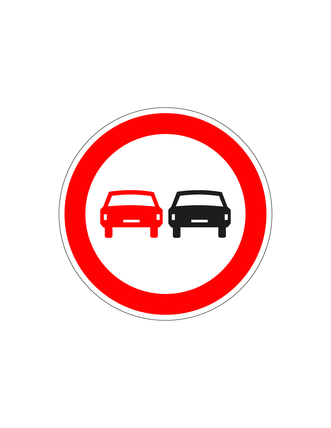 Dit bord inhaalverbod geeft aan dat het op deze weg verboden is om in te halen voor alle motorvoertuigen. Hieronder vallen dus ook motoren.