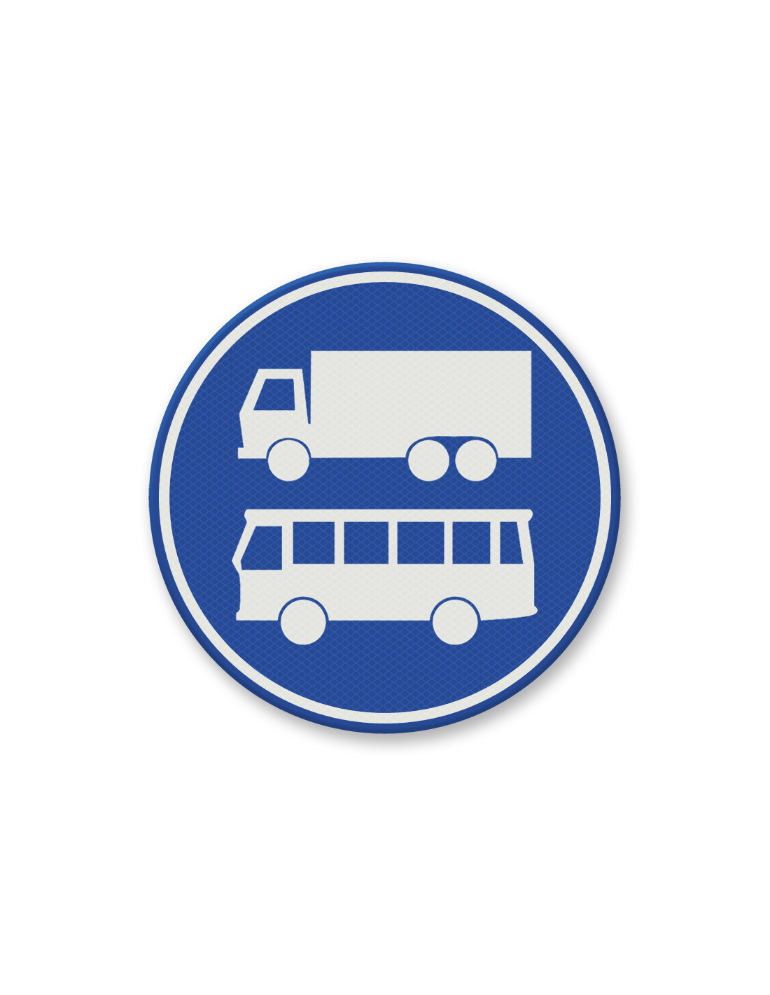 Belangrijkste kenmerken verkeersbord F19 rijstrook bussen en vrachtwagens