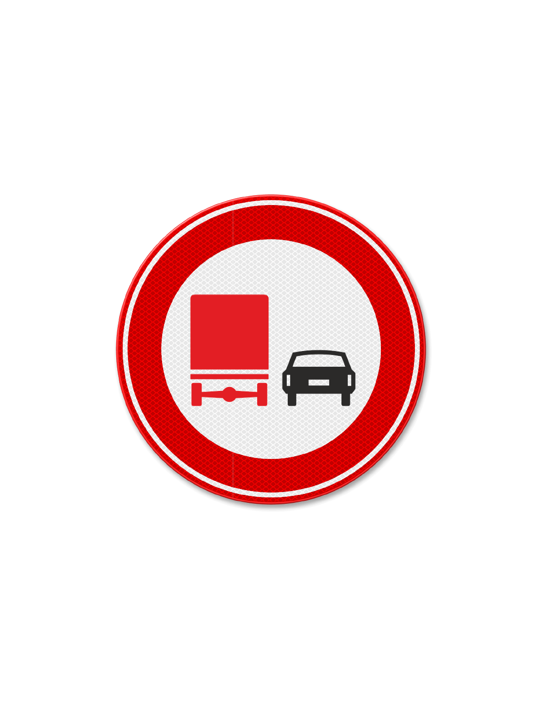 Belangrijkste kenmerken verkeersbord F3 inhaalverbod vrachtwagens, aluminium DOR