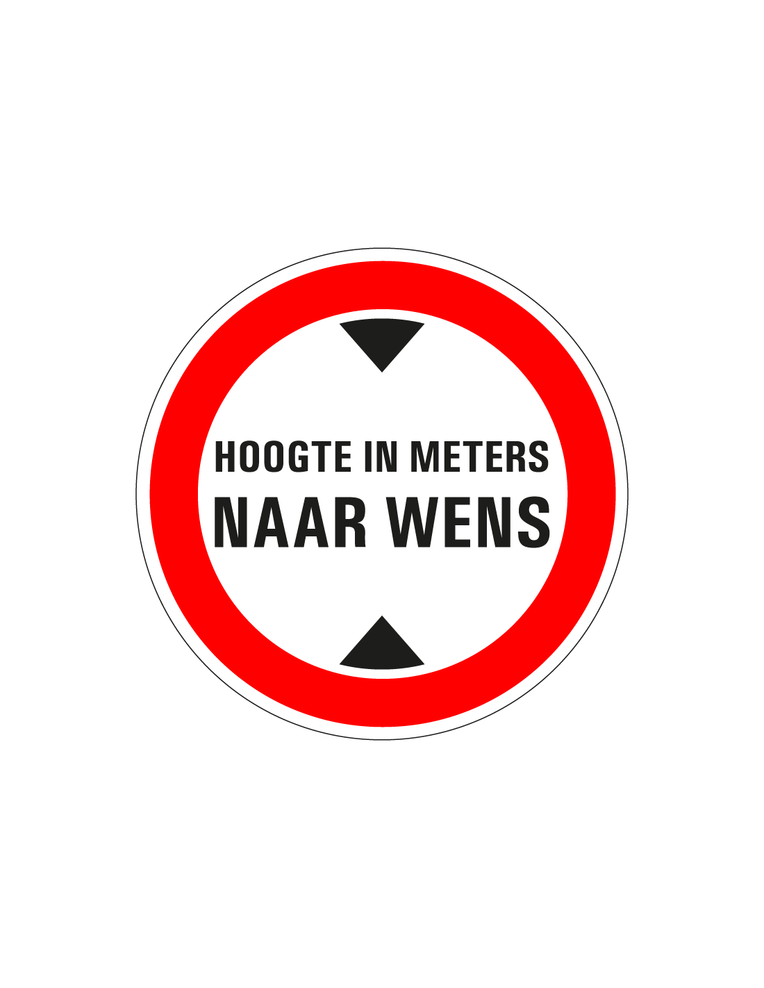 Dit maximale doorrijhoogte bord laat zien dat er op deze plek sprake is van een maximale doorrijhoogte. Door dit aan te geven zorgt u ervoor dat bestuurders hier niet met te hoge voertuigen onderdoor rijden. De hoogte kunt u naar wens invullen.