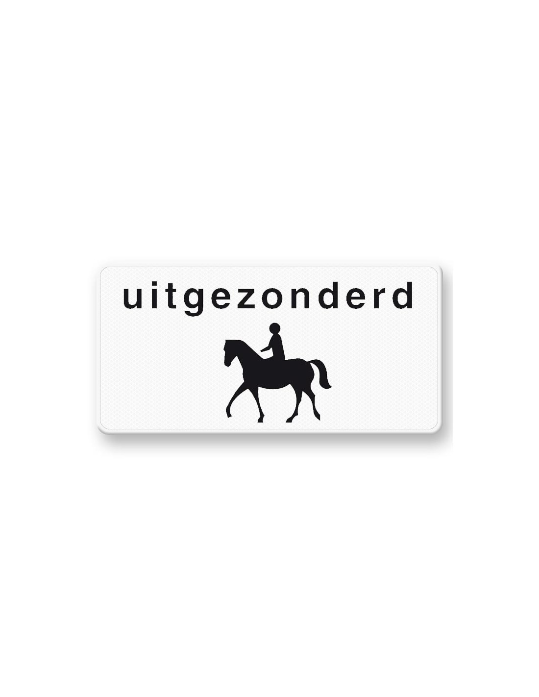 Er zijn twee verschillende afmetingen verkrijgbaar van het uitgezonderd ruiters bord. De toepassing hiervan is afhankelijk van het verkeersbord waarbij je het onderbord wilt plaatsen. We hebben de volgende afmetingen voor je beschikbaar: