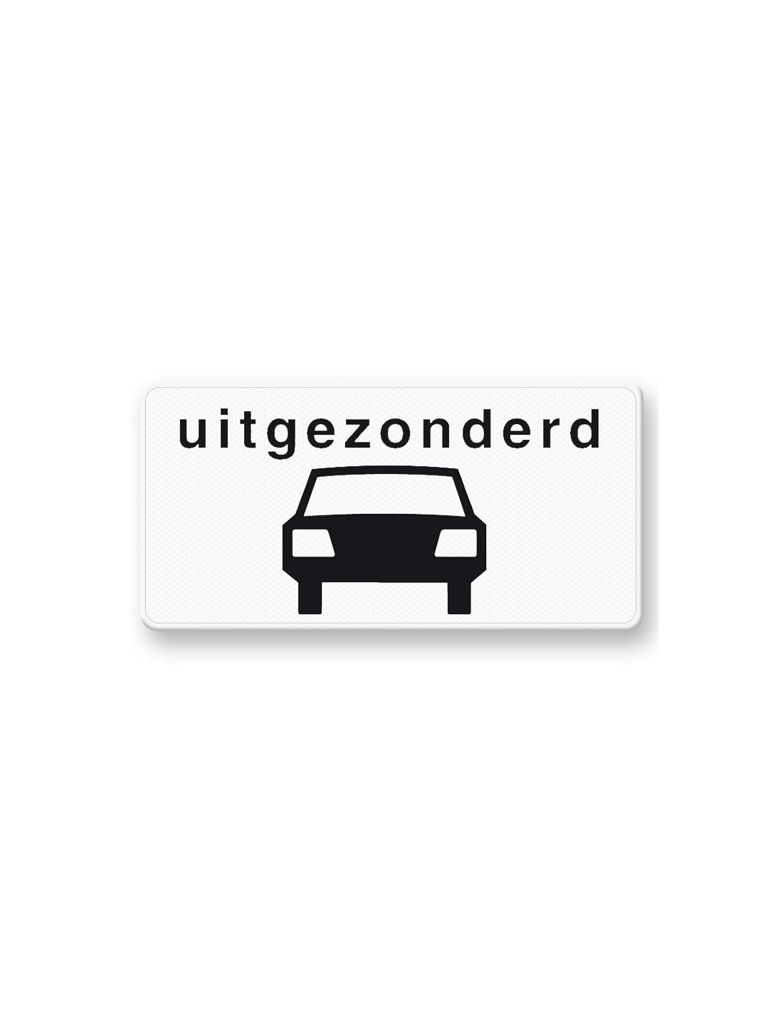 Er zijn twee verschillende afmetingen verkrijgbaar van het uitgezonderd auto's bord. De toepassing hiervan is afhankelijk van het verkeersbord waarbij je het onderbord wilt plaatsen. We hebben de volgende afmetingen voor je beschikbaar: