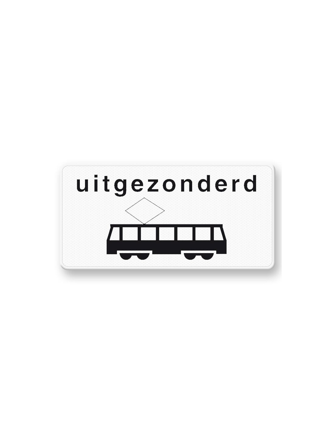 Er zijn twee verschillende afmetingen verkrijgbaar van het uitgezonderd trams bord. De toepassing hiervan is afhankelijk van het verkeersbord waarbij je het onderbord wilt plaatsen. We hebben de volgende afmetingen voor je beschikbaar: