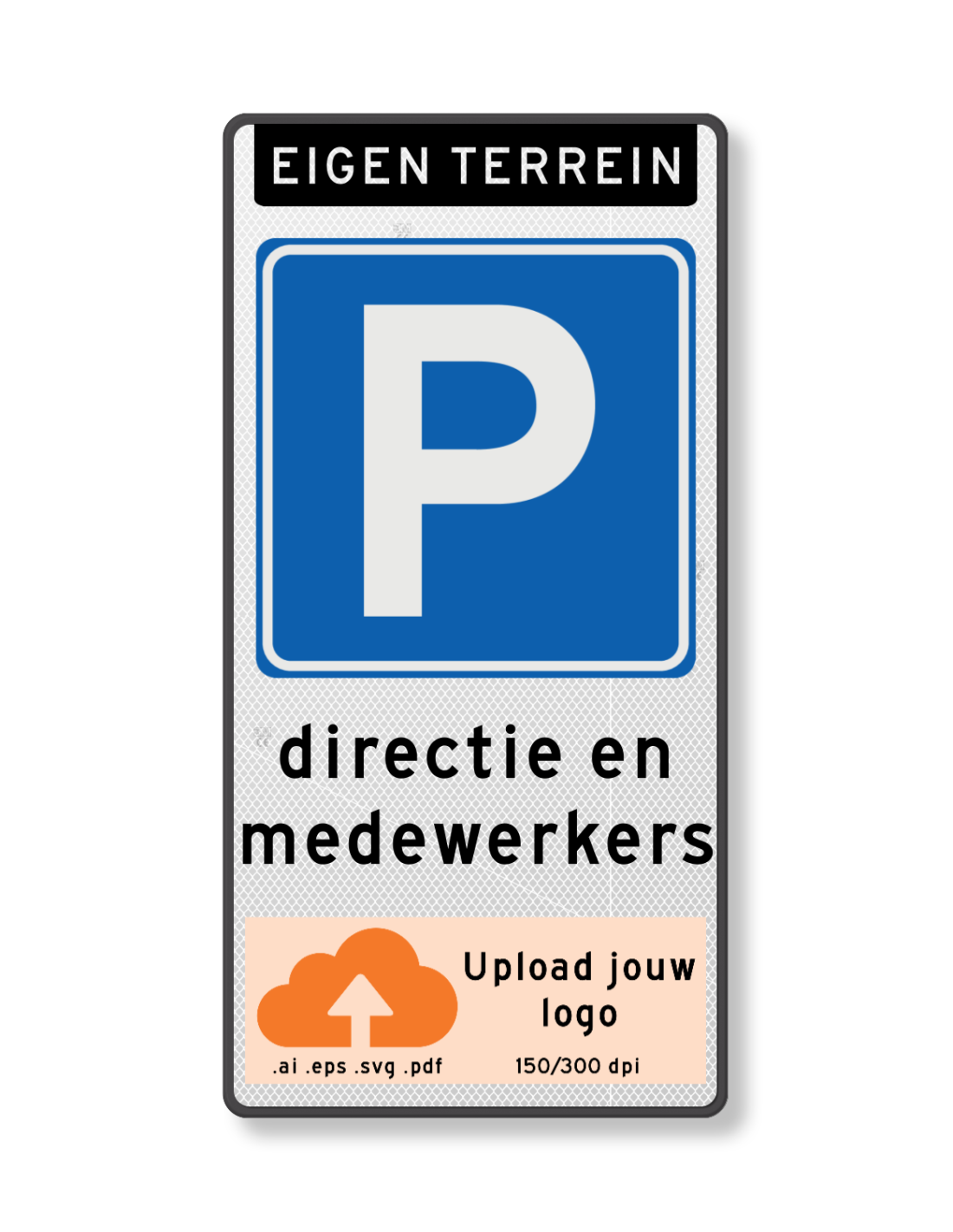 Het verkeersbord parkeerplaats directie en medewerkers met eigen logo geeft aan dat er hier sprake is van een eigen terrein met een parkeerplaats die alleen bestemd is voor de directie en medewerkers van dit bedrijf. Met behulp van onze live configurator kun je gratis je eigen logo aan het verkeersbord toevoegen, zodat duidelijk is om welk bedrijf het gaat.