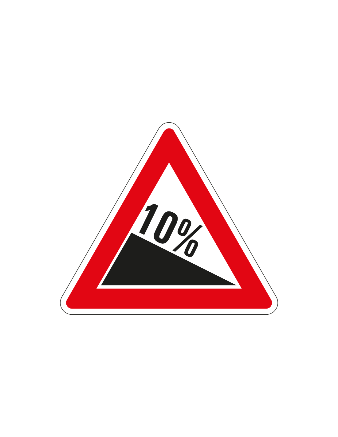 Verder is het gevaarlijke daling symbool gemaakt van kunststof, wat hem geschikt maakt voor binnen- en buitengebruik. Bovendien is het bord temperatuurbestendig van -40 tot +60 °C en resistent tegen oplosmiddel en lichte chemicaliën. Het bord is licht, stabiel en niet makkelijk ontvlambaar. Daarnaast is het bord in verschillende afmetingen verkrijgbaar en is het percentage van de daling naar wens in te vullen met onze online live editor. Het bord is nummer J7 van de RVV codes.