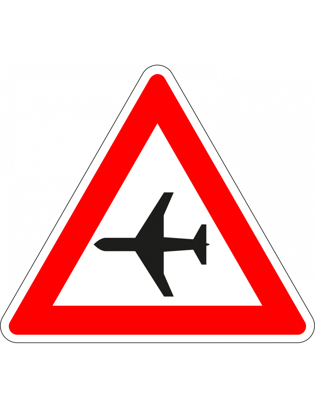 - Driehoekig bord met symbool pas op laagvliegende vliegtuigen
