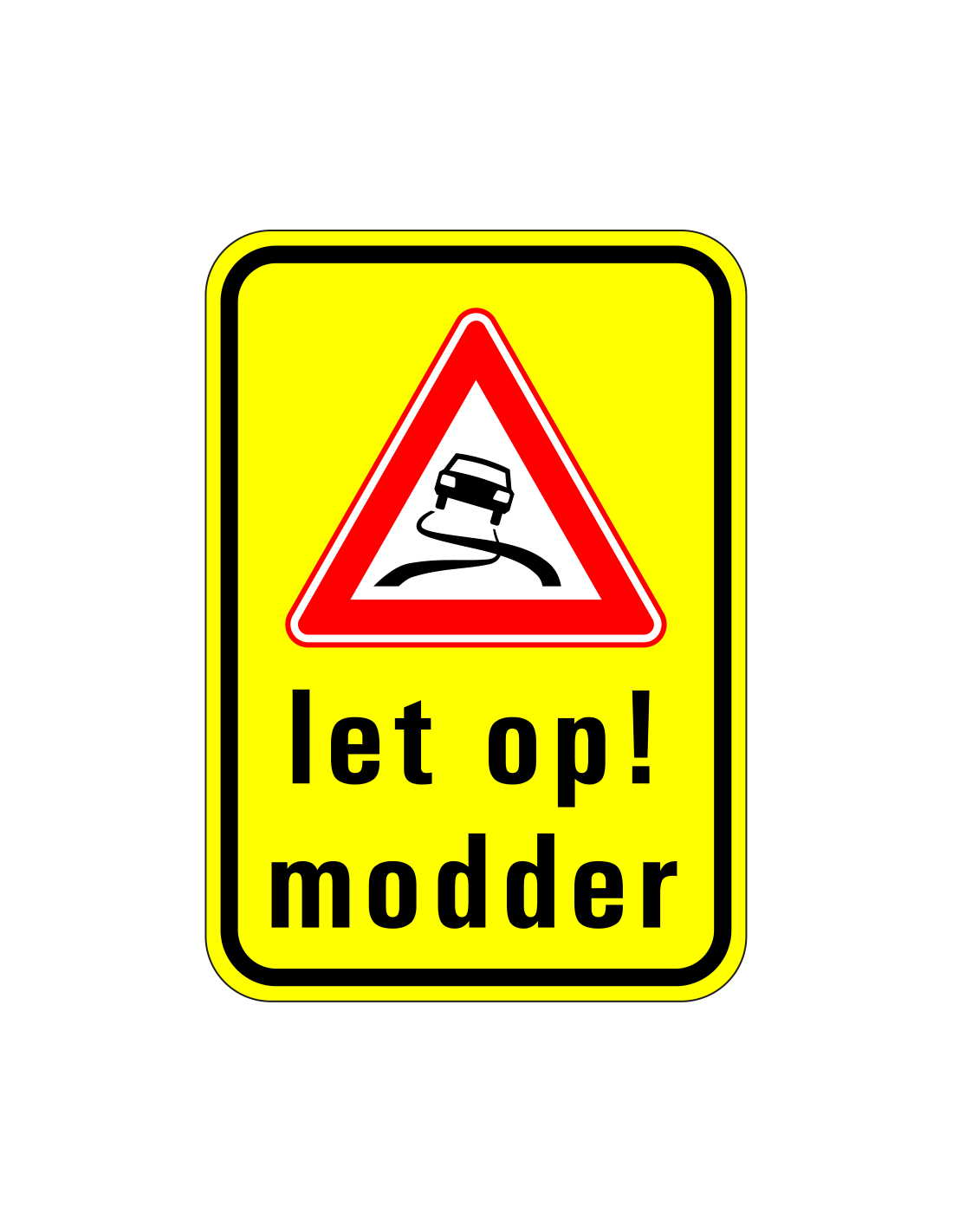 - Rechthoekig bord met symbool slippende auto en tekst