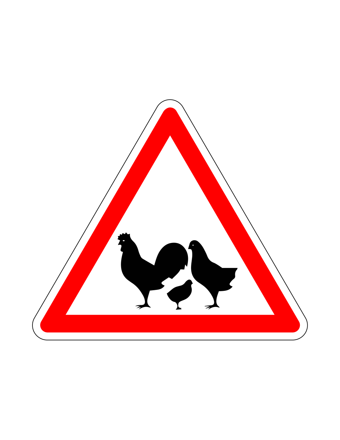 - Driehoekig bord met symbool kippen