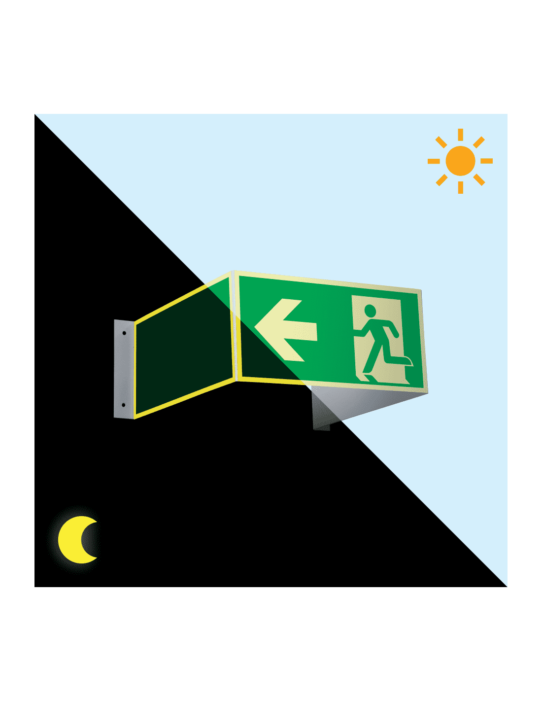 - Lichtgevend 3D bord met pictogram nooduitgang en pijl