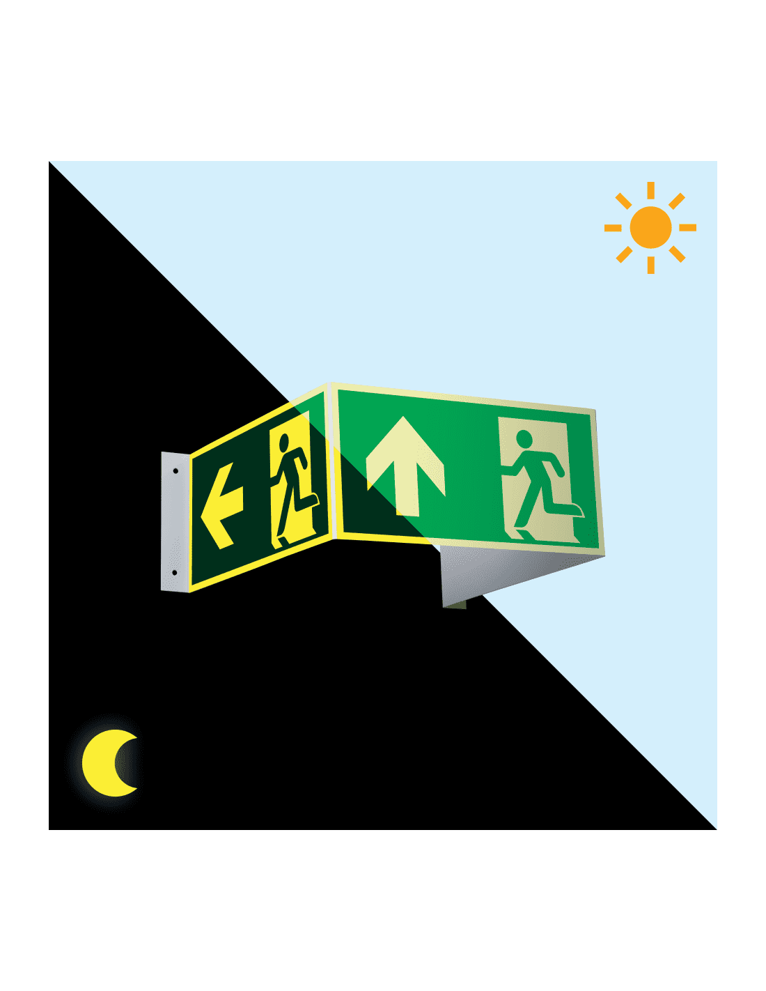 - Lichtgevend 3D bord met pictogram nooduitgang en pijl