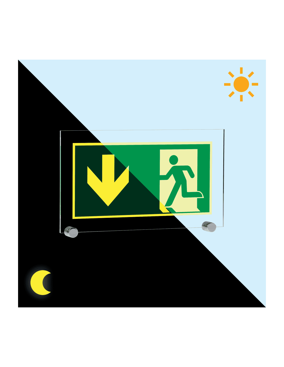 Belangrijkste kenmerken extra lichtgevend nooduitgang bord pijl beneden acryl