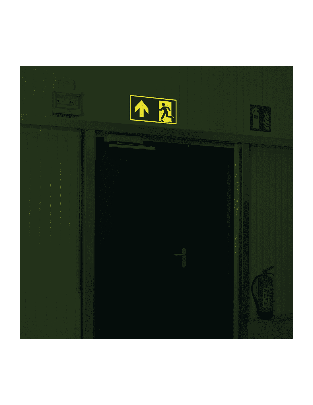 - Om aan te geven dat je de pijl moet volgen om de nooduitgang te vinden