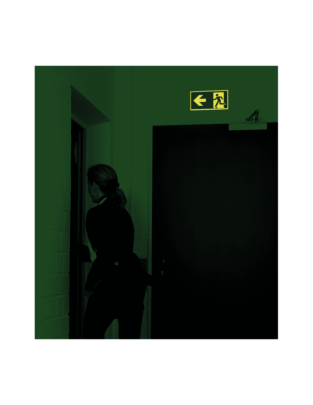 - Om aan te geven dat je de pijl moet volgen om de nooduitgang te vinden