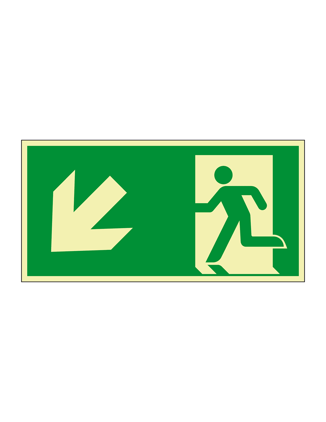 - Rechthoekig bord met pictogram nooduitgang linksonder