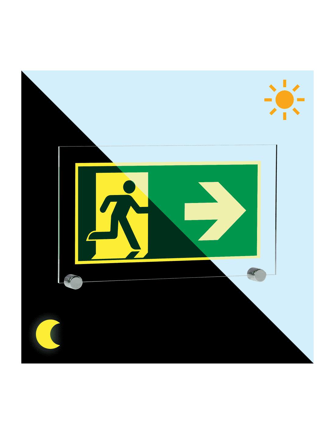 Dit acryl extra lichtgevend nooduitgang pijl rechts bord laat zien dat dat nooduitgang kan worden gevonden door de pijl te volgen. Op die manier zorg je ervoor dat mensen in een noodsituatie precies weten waar de nooduitgang is.