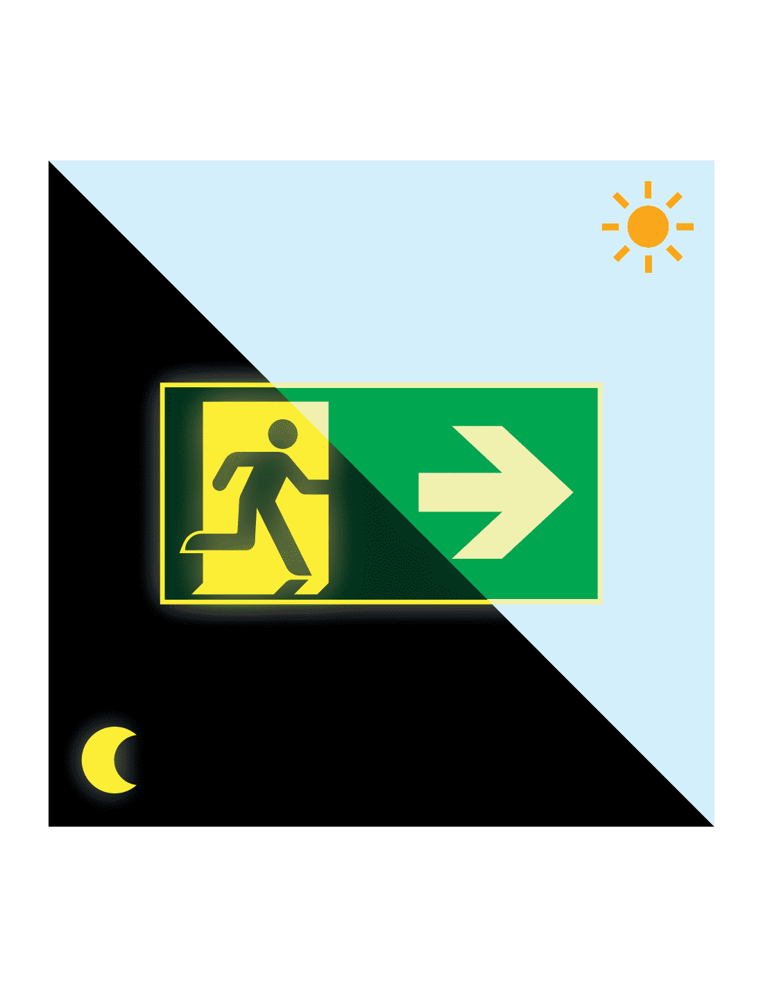 Belangrijkste kenmerken extra lichtgevend nooduitgang bord pijl rechts