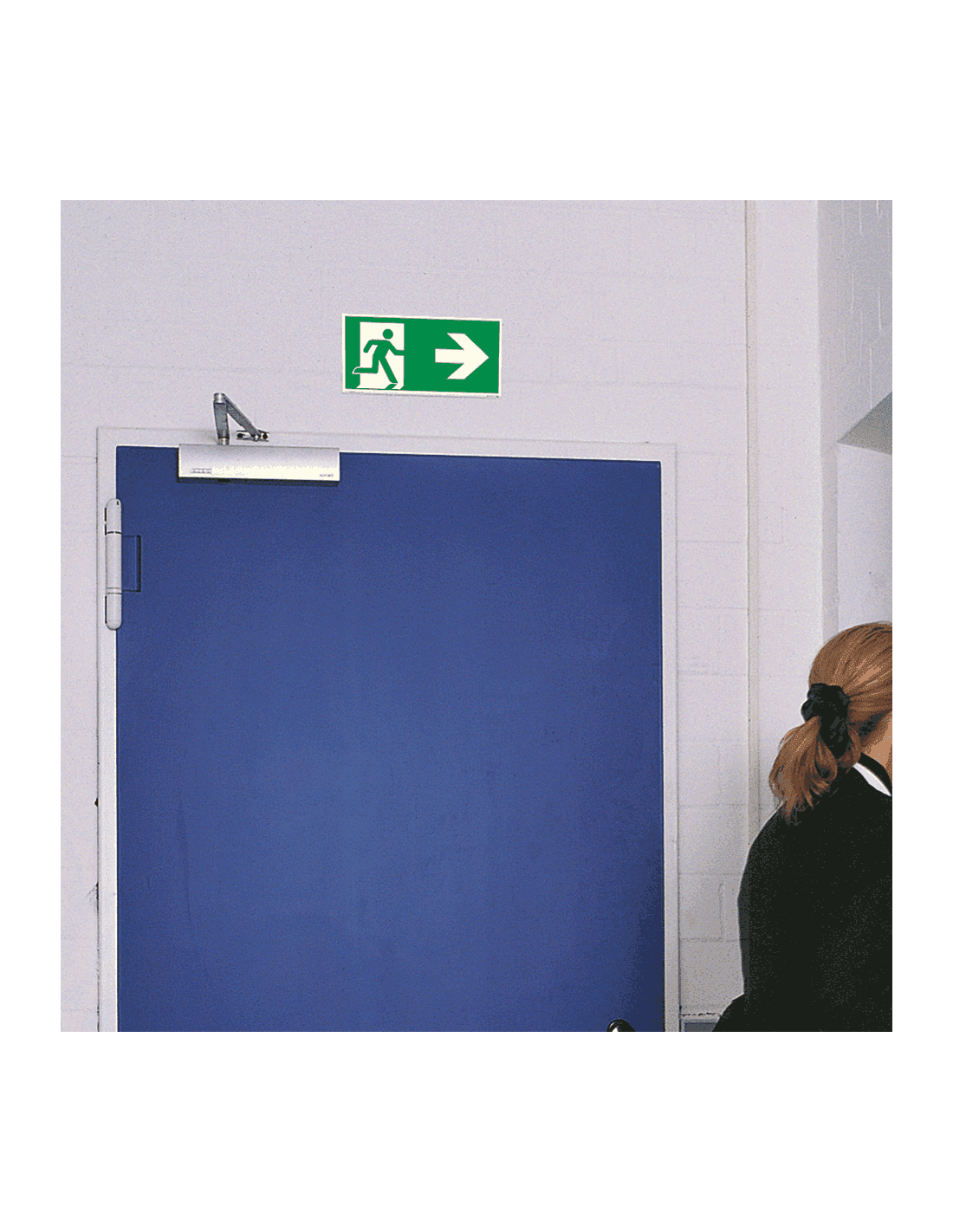 - Rechthoekig bord met pictogram nooduitgang rechts