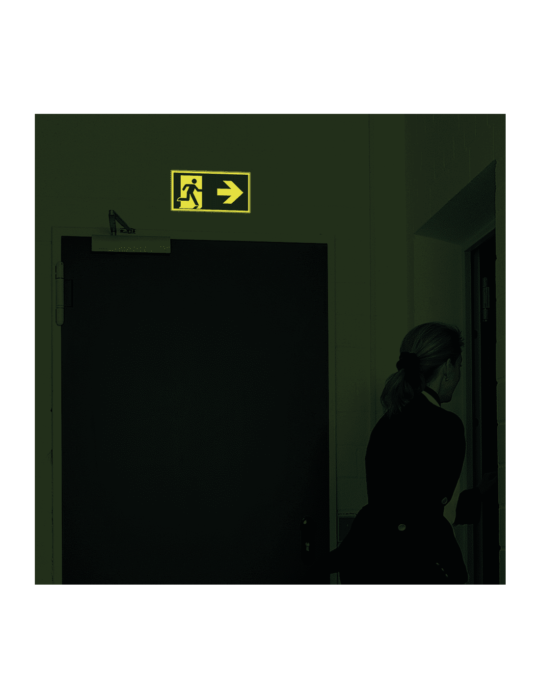 - Om aan te geven dat je de pijl moet volgen om de nooduitgang te vinden