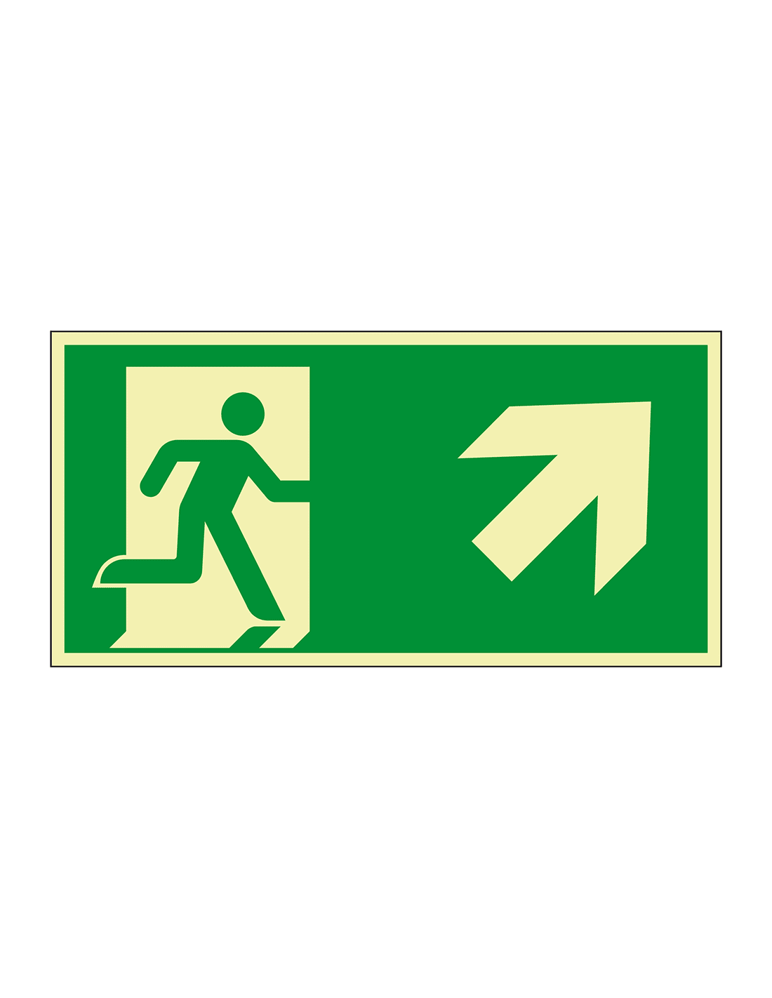Dit extra lichtgevend nooduitgang pijl rechtsboven bord laat zien dat dat nooduitgang kan worden gevonden wanneer je de pijl volgt. Op die manier zorg je ervoor dat mensen in een noodsituatie precies weten waar de nooduitgang is.