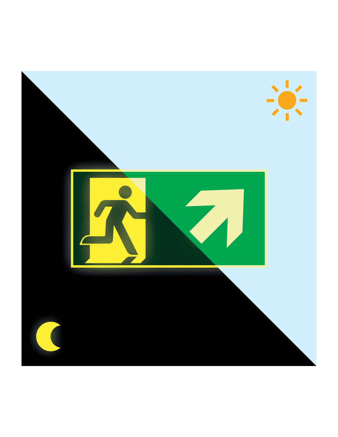 Belangrijkste kenmerken extra lichtgevend nooduitgang bord pijl rechtsboven