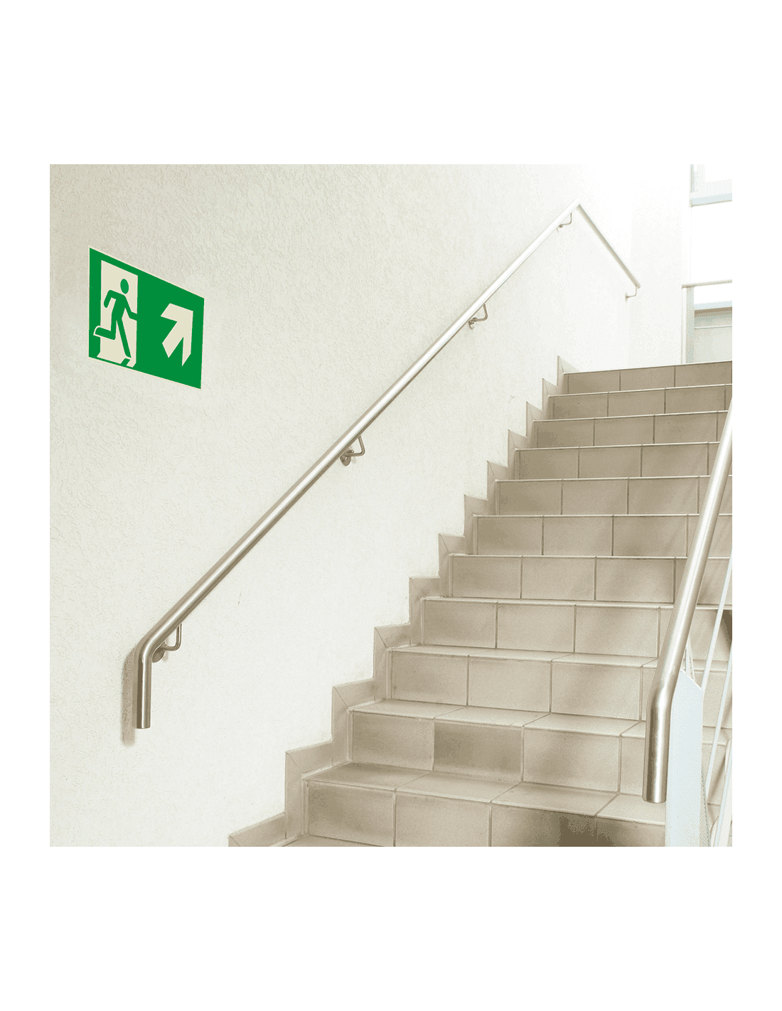Het extra lichtgevend nooduitgang bord pijl rechtsboven kun je gebruiken om aan te geven dat mensen de nooduitgang kunnen vinden door rechts naar boven te lopen. Op deze manier zorg je ervoor dat mensen de nooduitgang in geval van nood snel kunnen vinden.