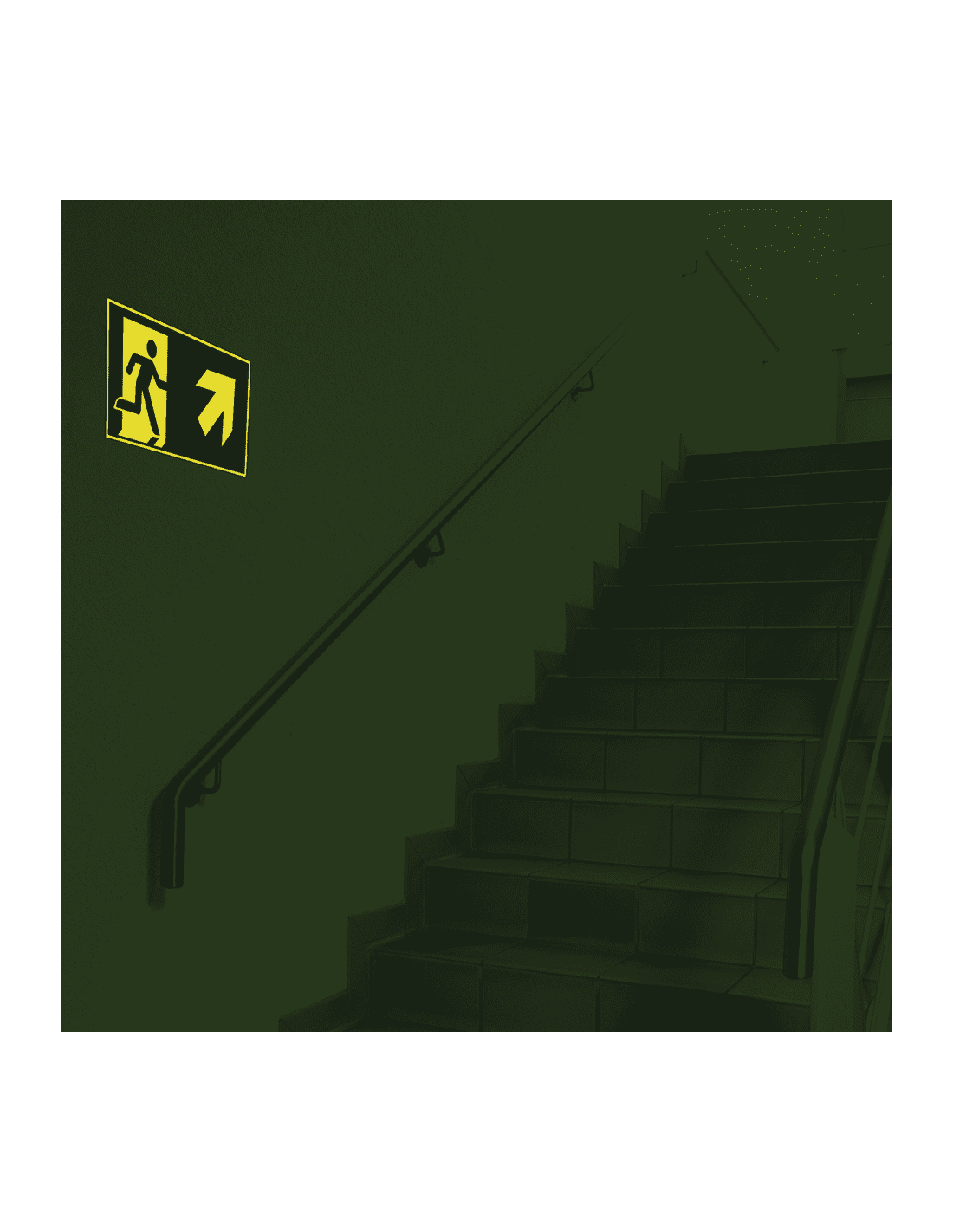 - Om aan te geven dat je de pijl moet volgen om de nooduitgang te vinden